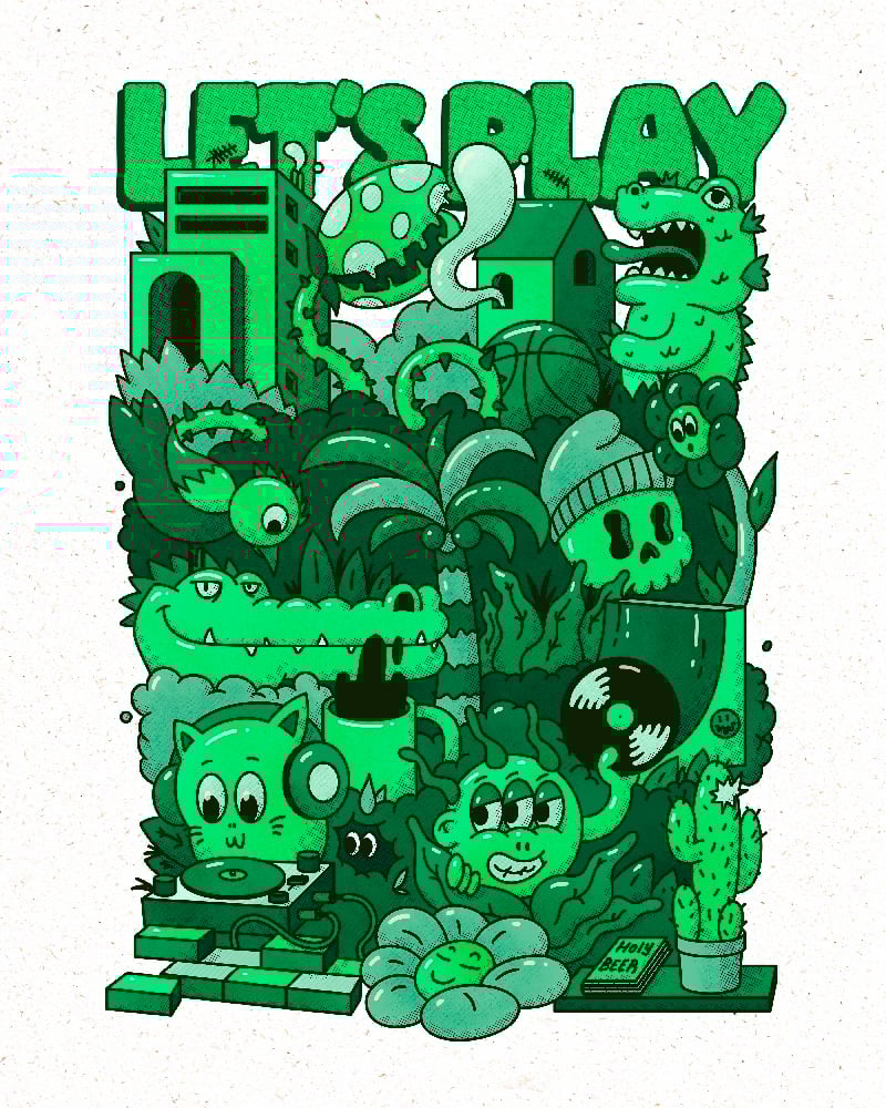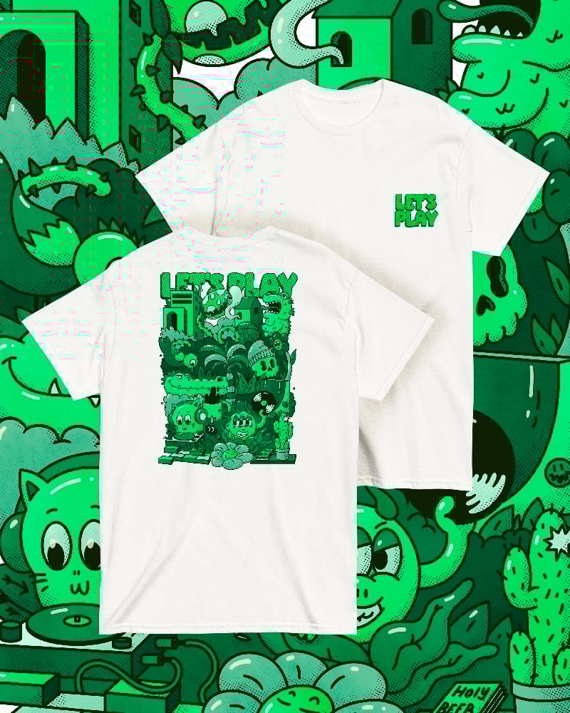 Un tee-shirt avec une illustration pleine de bonnes vibrations et des personnages funny 😸